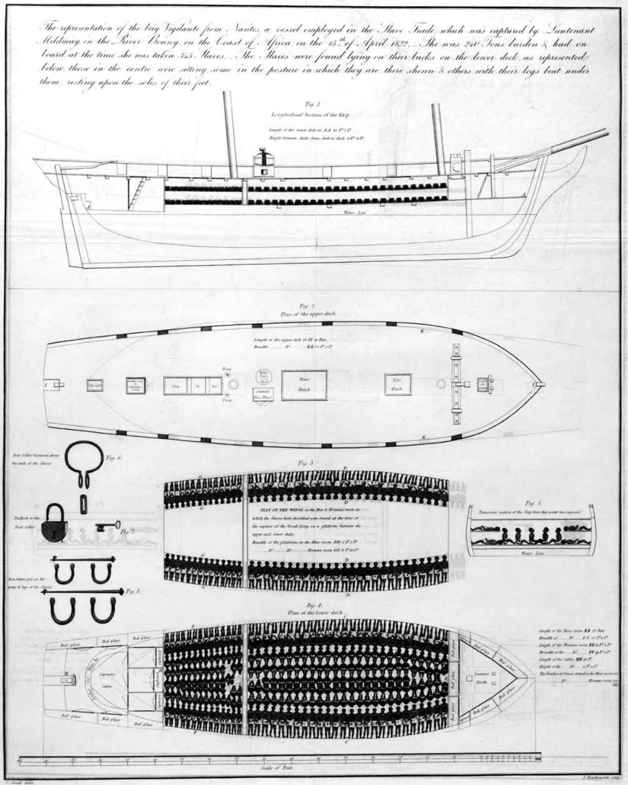 ……为呼吸一丝空气,他们紧贴栅栏;为喝到一口淡水,他们大打出手。每个人都口干舌燥,饥肠辘辘,仿佛刚刚经历瘟疫一般。前日上船的奴隶尚在残喘,更早到来的奴隶早已饿得瘦骨嶙峋……4