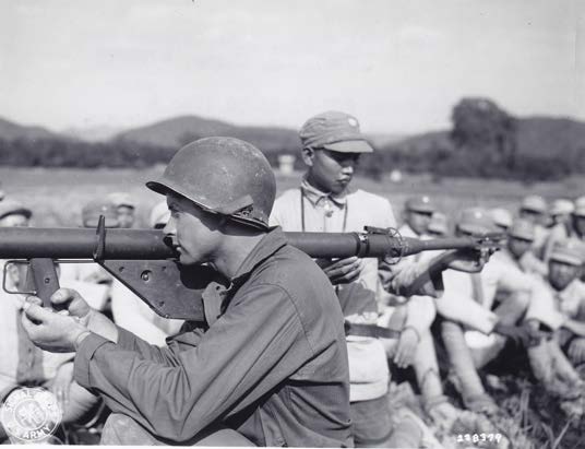 Pfc.James M.Faulkner,Ganesville,Tex.,demonstrates the operation of abazooka to members of the276th Regt.,13th Chinese Army.