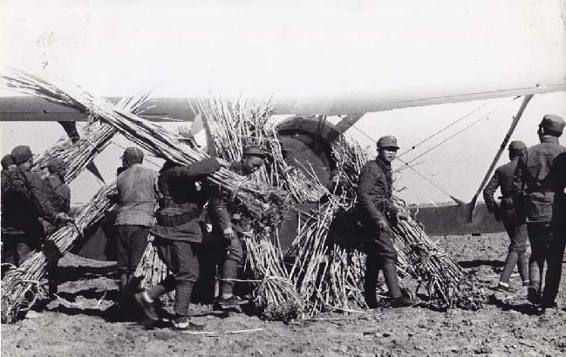 Scarcely had this pursuit plane landed when Chinese soldiers rushed to the scene carrying large bundles of straw in order to camouflage it and make it invisible to the raiders.