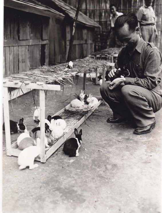 T/5 Wallace F. Carp, Wichita, Kansas, looks on while Chinesestudents do blacksmithing in 52nd Army School Hq. Yenshan,Yunnan, China.