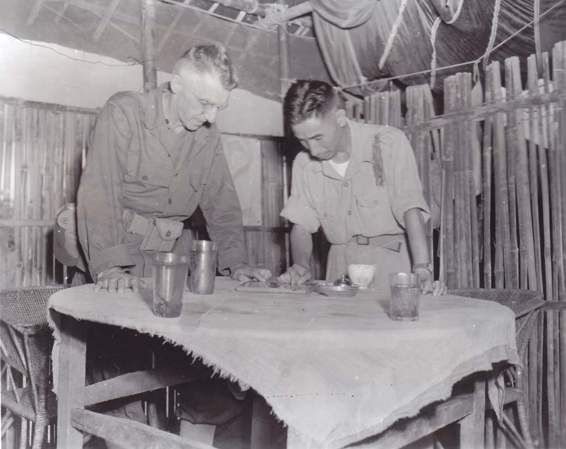 Aided by long-spoken knowledge of Chinese language,General Stilwell is able to work out problems in the field with allied commanders.Here with General Pan Yu-kun commander of Chinese50th Division.