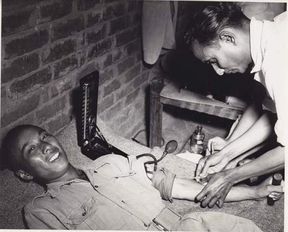 A Chinese soldier gives his blood to be used for plasma atblood bank here at CATC..