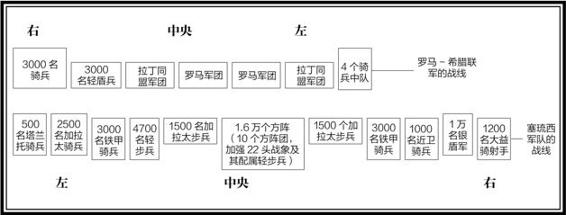 这一部署方式,不免让人想起后世凯撒与庞培的法萨卢斯会战,同样在总兵力和骑兵数量上占尽劣势的凯撒,采取了几乎一模一样的布阵,略去了“左翼”,而将主要的胜算放在其步兵上。我们也可以猜测,西庇阿在此时的想法与后来的凯撒不谋而合,他将借助弗里吉乌斯河掩护自己的左翼,以全部骑兵和轻盾兵防守右翼,对手在这里的迂回将会需要更长的路程,从而给罗马步兵更多的发挥时间。