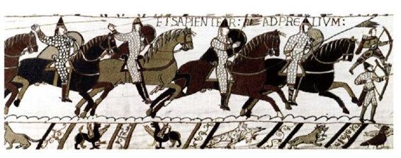 ◎ 贝叶挂毯中的诺曼骑士和弓箭手的形象。