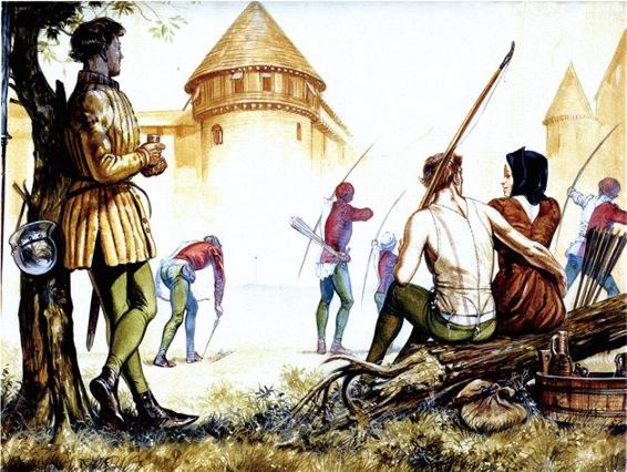 由此,英国的长弓传统让英格兰在百年战争中能够组建起数量庞大的长弓兵团,并以此对抗法兰西的重装骑士。这是长弓与长弓手们最好的时代——高贵而骄傲的贵族骑士们在踏上战场时,面对的不是同样高贵而遵守礼仪的对手,而是呼啸而来,遮天蔽日的箭影。