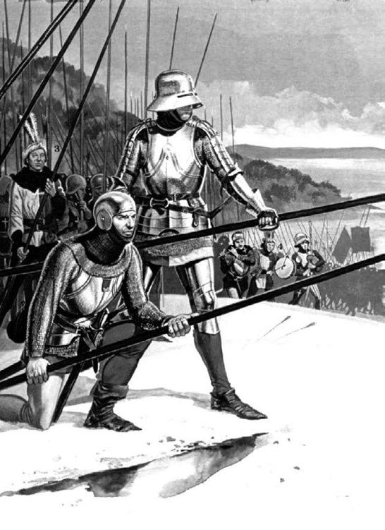 到了13世纪末期,奥地利人逐渐摸索出了新的战术,既然己方的步兵无法与瑞士人抗衡,那就让重甲骑士下马组成密集方阵,然后加强大量的弩手。这两者都针对了瑞士步兵的弱点:缺乏盔甲抵御弓弩、惯用长矛长戟的瑞士步兵在与手持双手大剑、战斧的下马骑士近身战中十分不利。