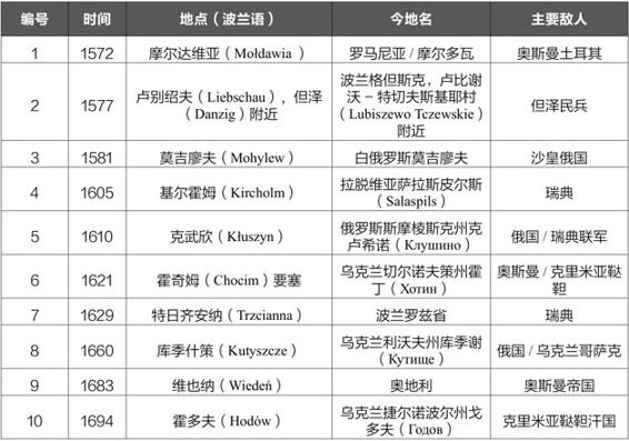 按照波兰人的记录,总结出翼骑兵在力量悬殊的情况下获得的十次重大胜利: