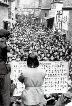 图四 “三反五反”期间,宣传队员在上海某里弄教唱歌曲。