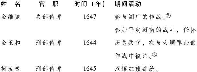 (3)1644年10月以后在各地投降或受荐的明朝军官: