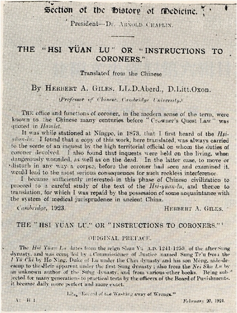 宋本《洗冤集录》丧失殆尽,现存最古本为元代复刻本《宋提刑洗冤集录》。历元明,以《洗冤集录》为蓝本进行补、集、注、纂的著作甚多。最早被翻译到朝鲜的是元代人王与的《无冤录》,其中也主要是宋慈学说。继有日本人将朝译本转译成日文。最早传入欧洲的是据清代版本《洗冤录》译出的法文节译本。一九八一年出版的美译本是《洗冤集录》第一个外文译本。其意义在于:此前翻译到国外的中国古代法医学著作都是增删《洗冤集录》的版本,西方有学者认为,从明清版本翻译到外国的法医著作难以证明中国古代法医学已达至先进水平,只有发掘和翻译出中世纪的《洗冤集录》原本,才能有力证明中国法医学比同时代的欧洲先进。美译本做的这项翻译工作,足以证明宋慈是人类的法医学之父。