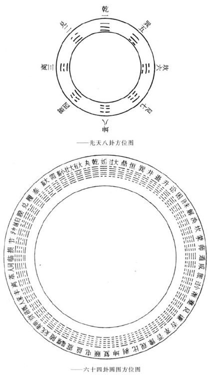 所以名为先天图者,因此图所表之八卦方位,与《说卦》所说不同。(参看本篇第三章第四节)故康节以此为伏羲之先天八卦,而以《说卦》所说之八卦方位,为文王之后天八卦。