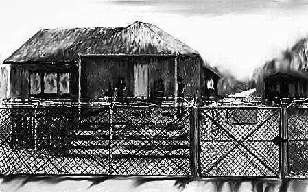 战后变成残酷“虐俘”象征的山打根俘虏营,在十六岁的比尔印象中,第一个就是铁丝网。生活在铁丝网的后面,但是每天出这个大门去做工,俘虏终日劳动,用最原始的工具:铁锹、铁铲、扁担、竹篮,以愚公移山的方式建筑机场和防空洞。在炽热的高温下,很多人扑倒在曝晒的石砾堆里,或者丛林的热病袭来,在抽搐中死亡。
