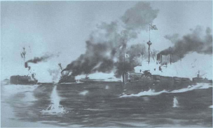 这场战斗是以北洋舰队的“定远”号先开炮拉开战幕的。可惜的是,不知道是因为年久失修还是什么缘故(“定远”舰当时已经下水12年了),“定远”巨炮一响,舰桥就开裂了,坐镇指挥的丁汝昌跌了下来,信号旗装置也废了。