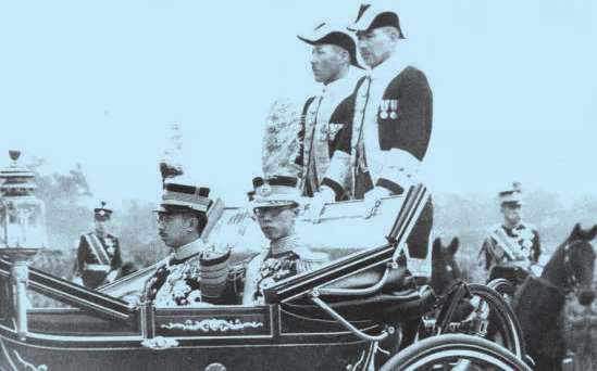1935年,溥仪以“满洲国”皇帝身份访问日本,与日本天皇同乘阅兵