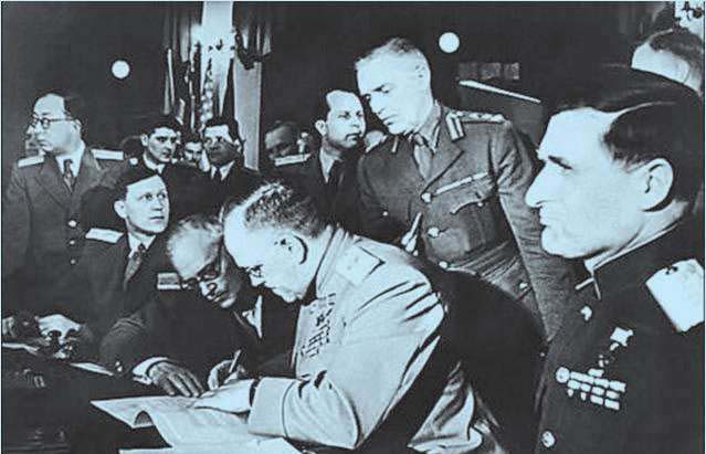 朱可夫代表苏联,在协议书上第一个签字。