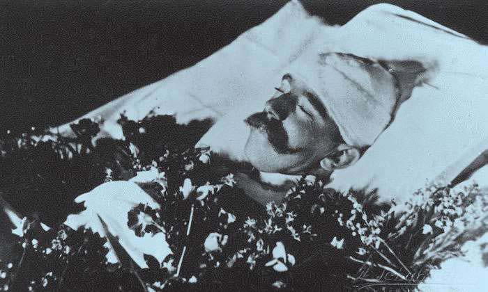 鲁道夫遗容。头部被包扎是因为他是用枪击中自己的脑袋自杀的