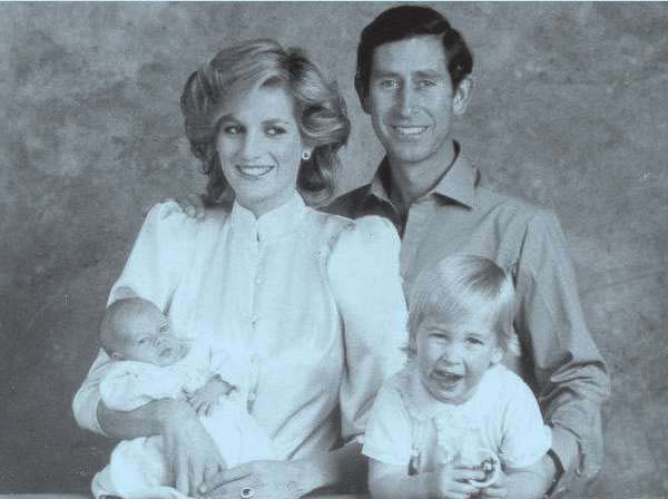 查尔斯、戴安娜、威廉王子和哈里王子一家合影