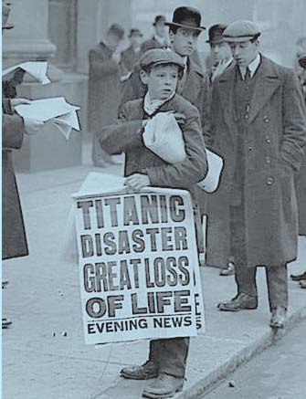 拿着载有“泰坦尼克”号沉没新闻号外的报童