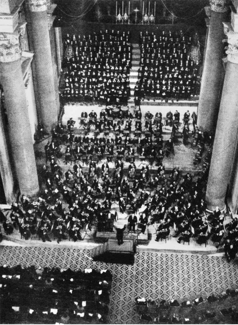 纳粹音乐媒体仅偶尔提及西班牙和德国音乐家的合作演出,但关于和法西斯意大利的紧密关系所带来的繁荣文化合作,则有多得多的报道。尽管在20世纪30年代,意大利还很少上演莫扎特的音乐,1941年的庆祝活动让他的作品获得了真正的复兴。据《维也纳费加罗》报道,这是意大利文化宣传部的部长直接激发的结果;费尔南多·普列维塔利(Fernando Previtali)于3月策划的14小时电台节目也功不可没。[559]活动高潮出现在12月3日和4日,是莫扎特年的《安魂曲》纪念演出,在罗马的天使与殉教者圣母大殿(Basilica di Santa Maria degli Angeli e dei Martiri)上演,由维克托·德·萨巴塔(Victor de Sabata)指挥,独唱为玛丽娅·卡尼利亚(Maria Caniglia)、埃蓓·斯蒂尼亚尼(Ebe Stignani)、贝尼亚米诺·吉利(Beniamino Gigli)和坦克雷迪·帕塞罗(TancrediPasero),合唱团有300人,乐队是大大扩编了的意大利官方广播乐团(EIAR Orchestra),全意大利所有剧院的顶尖乐师均有加盟。观众人数极为庞大,有意大利政要和第三帝国国防军代表出席。意大利利用这次活动,力图在规模和奢华程度上与维也纳的庆典活动相媲美。当然,两地的重点有所不同,意大利的演出在天主教堂举行,有一丝宗教意味。华美的节目册里有一篇关于莫扎特宗教音乐的文章,出自乔万尼·台巴尔迪尼(Giovanni Tebaldini)之手,把莫扎特的成就置于纯粹意大利的语境中。[560]有趣的是,马克斯·翁格尔(Max Unger)在为《音乐》杂志撰写的评论中,既没有提到天主教元素,也没有提到意大利民族主义者的角度。相反,翁格尔似乎被演出质量深深打动,称其“美妙得无法描述”;同时,也被宏伟的建筑“沐浴在光之海洋中”的效果深深震撼。[561]
