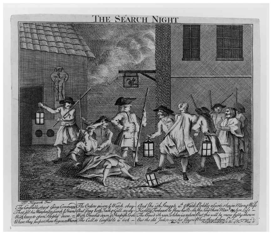 4.一对男女在一次例行搜捕中被巡夜人逮个正着(一份18世纪中期的版本,其创作时间可追溯至1710年代)。