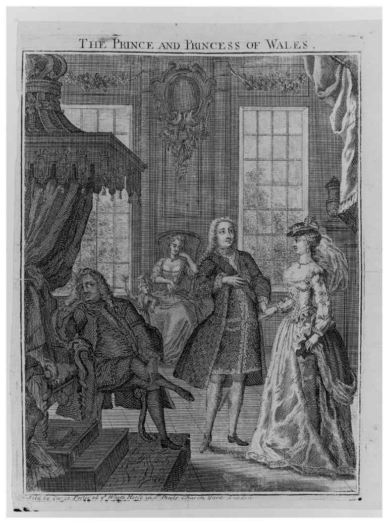 40.威尔士亲王与他的妻子,而背景则是被他抛弃的情人与私生子(1736)。
