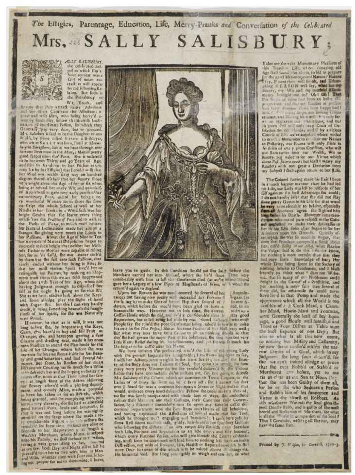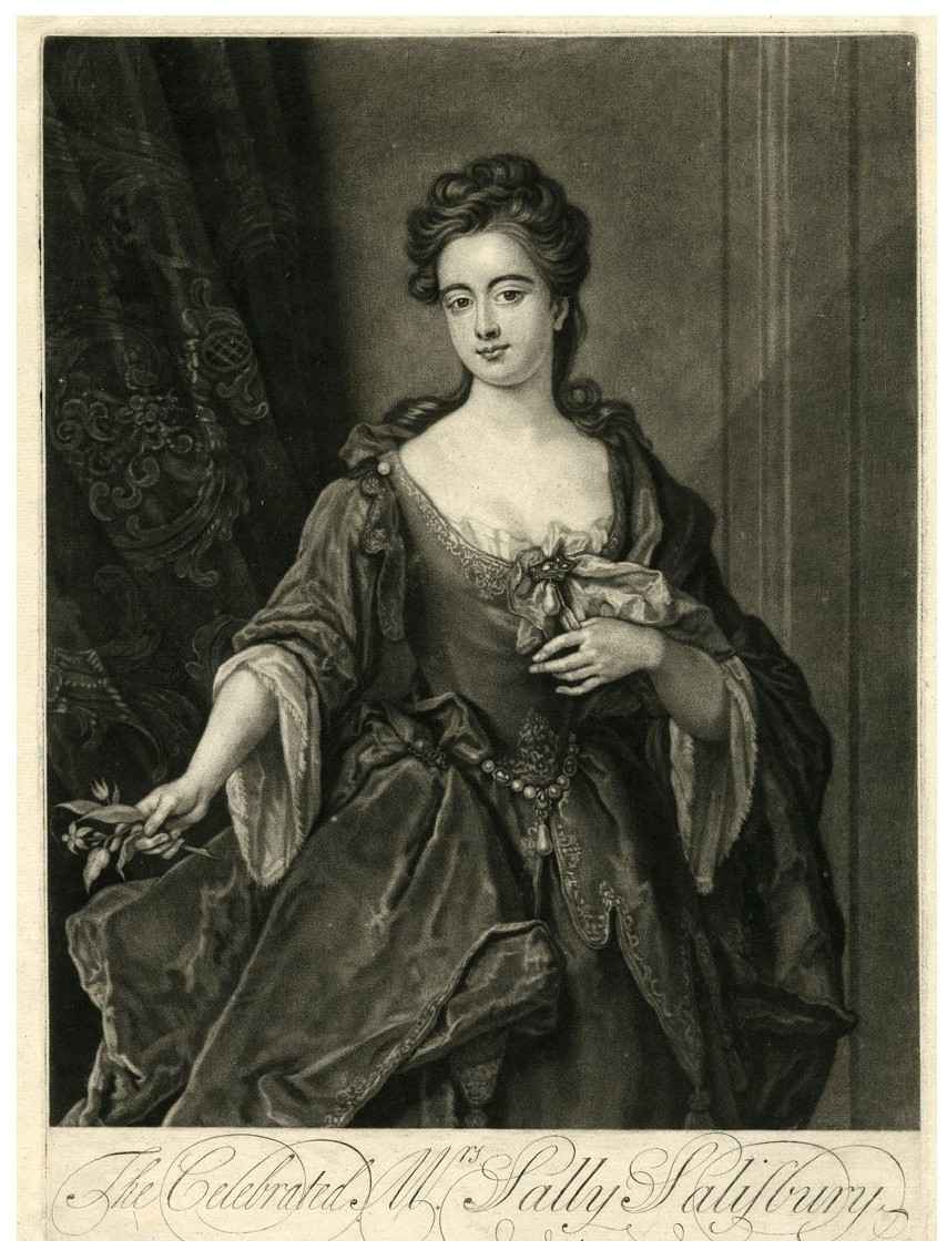 43.关于交际花萨莉·索尔兹伯里的一幅网线铜版画,约作于1723年。
