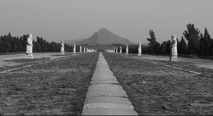 顺治帝的孝陵在昌瑞山主峰南麓,始建于康熙元年九月,其规模从南至北达5公里多,占据了这里的中心至尊地位。按这种安排,顺治以后的诸帝后陵及妃园寝,都要以此为中心,即所谓《周礼》中“先王之葬居中,以昭穆为左右”的葬法。孝庄要葬在这里,确实为玄烨出了难题,即在孝陵的左右两侧,无法安排孝庄陵寝。