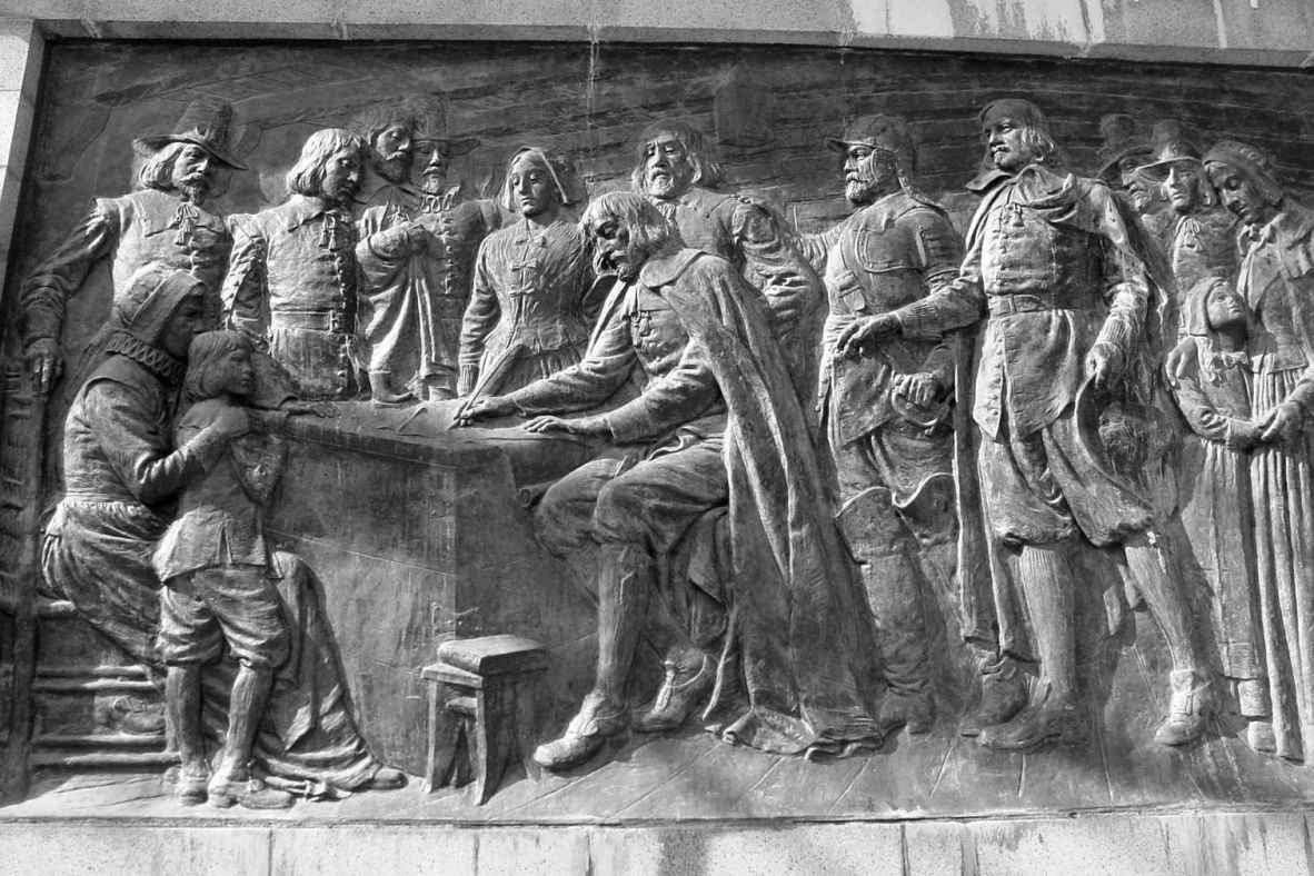 图9 描述签订《五月花号公约》的浅浮雕作品,位于普罗温斯敦布雷德福大街。照片由彼得·惠特洛克拍摄。