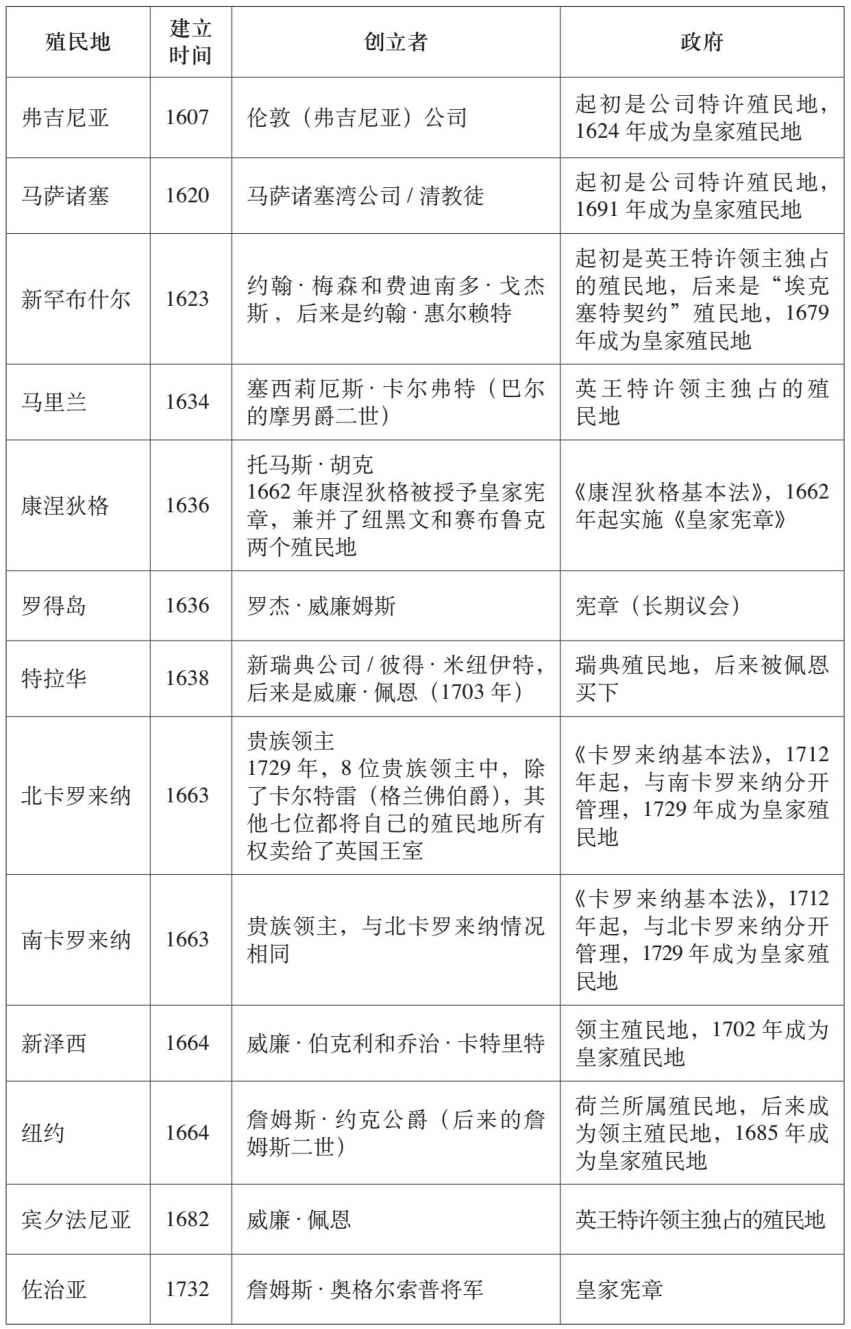 表1 最初的13个殖民地(按定居点建立时间排序)