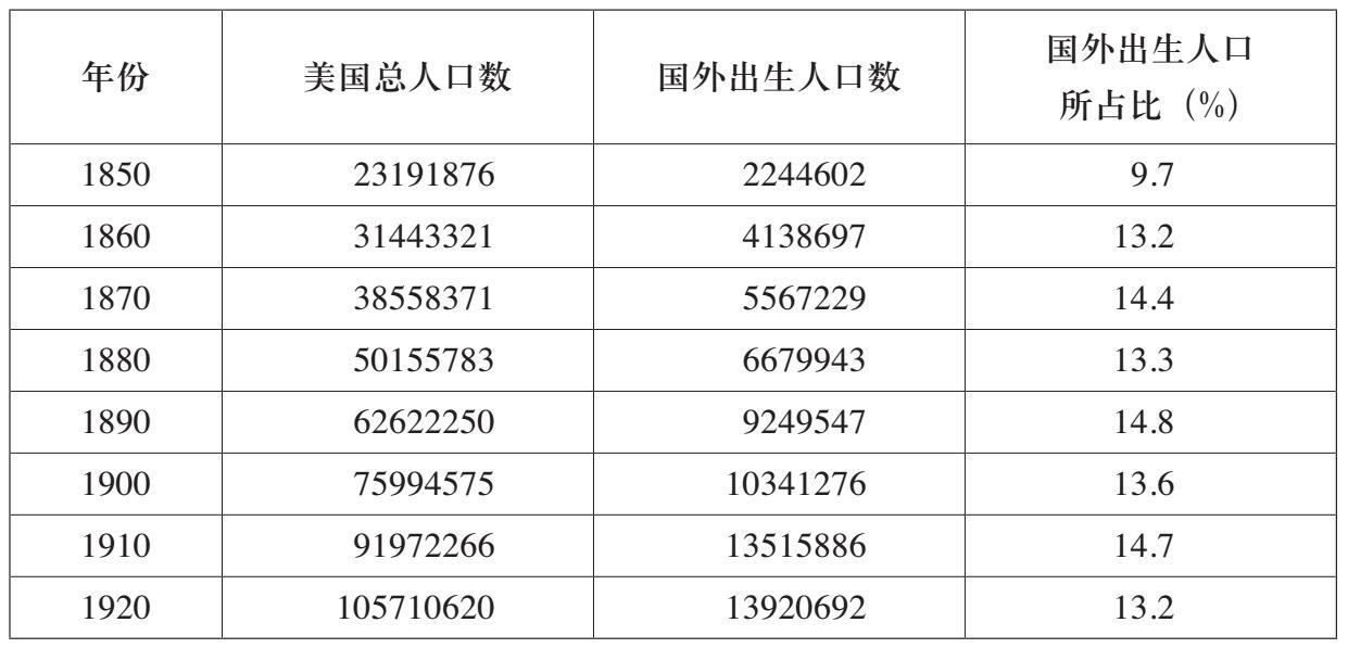 表2 在国外出生的美国人口统计(1850—1920)