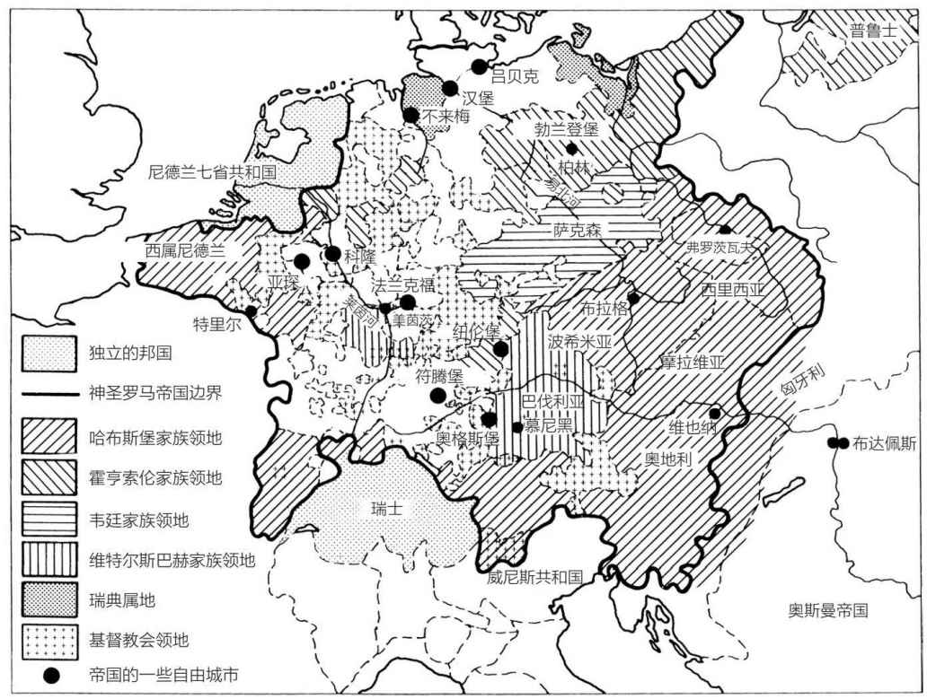 地图3.2 1648年《威斯特伐利亚和约》签订后的德国版图