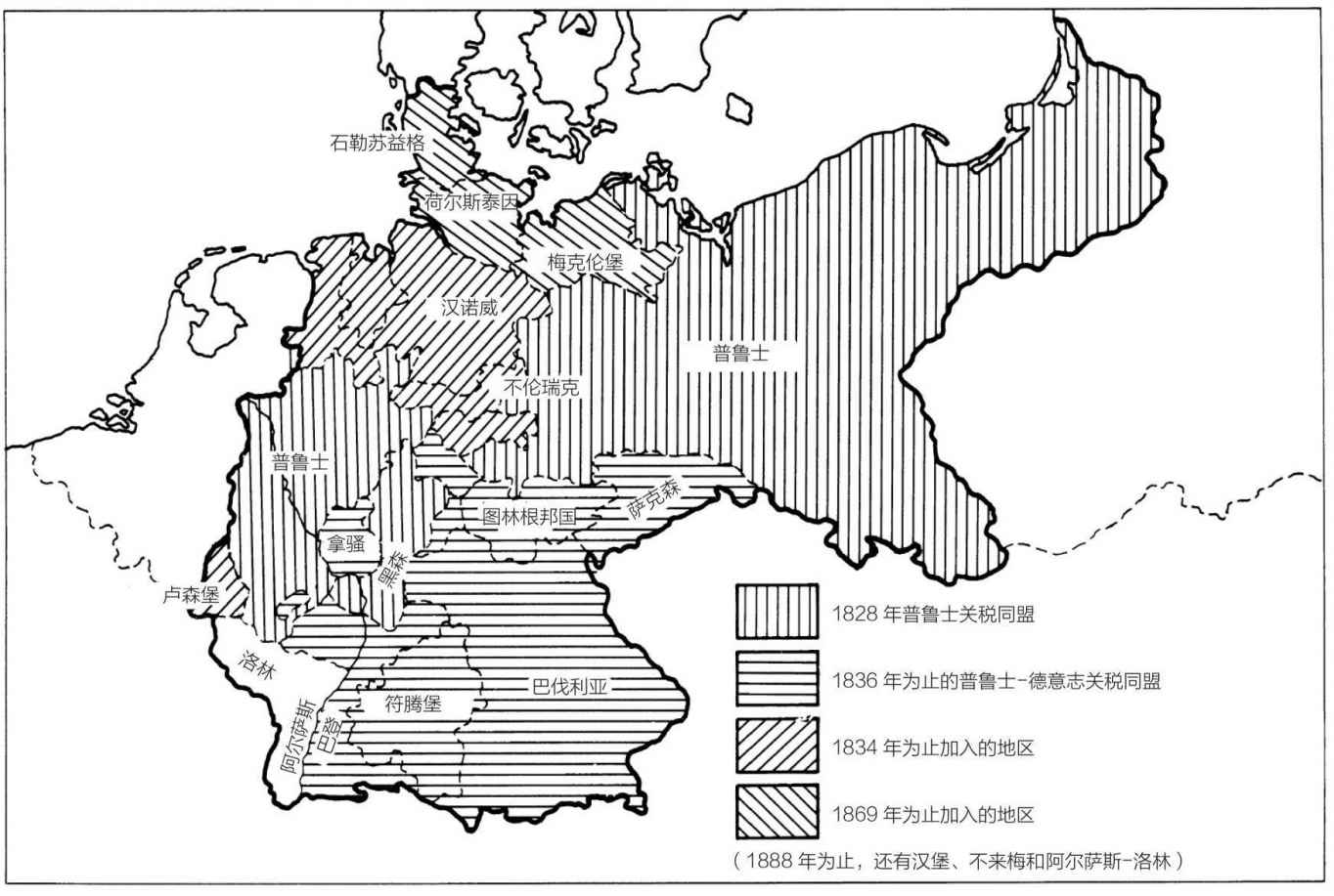 地图5.3 以普鲁士为首的德意志关税同盟的发展