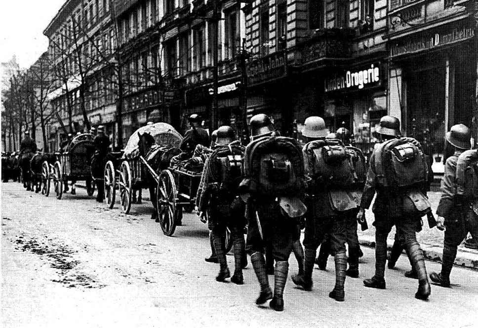图25 威登菲尔斯自由团(The Free Corps Werdenfels)在慕尼黑镇压革命起义。慕尼黑巴伐利亚州府档案馆藏。