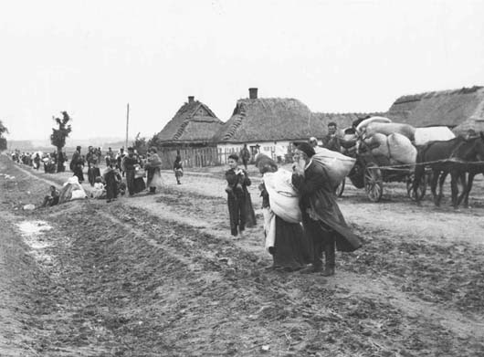 一九一四年晚期,趁俄军还未到,逃离家园的加利西亚犹太人。