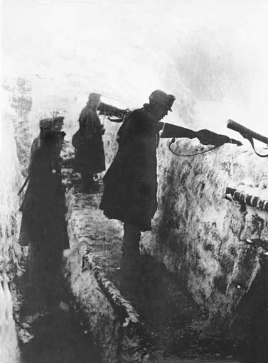 这场山区冬季战役似乎比以往更徒劳无功,因为他们一掘完壕沟,立即受到来自左右山头的侧翼攻击。有位德国联络官发现奥地利士兵“疲累、差劲”,斯拉夫人部队“不可靠”。[30]有位奥地利将军哀叹“他的兵偷偷摸摸四处走动”,“不再敬礼,不再擦步枪,不再刮胡子或剪头发……他们穿着一身脏兮兮、破烂、不合身的军服”。他指示他的军官,“别费心教他们打仗,他们在战斗中自然会学到;该教他们服从”。[31]