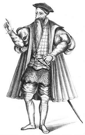 与他同来的一位船长,是同样精明强干的杜阿尔特·帕谢科·佩雷拉。此人是航海家、领袖、战术天才、地理学家、实验科学家、博学之士和数学家。佩雷拉是奉命在1494年敲定《托尔德西利亚斯条约》的学者之一。巴西被正式发现之前,他可能已经秘密去过那里。他写下了第一部描述黑猩猩使用工具的能力的论著;他把经度计算到非常精确的程度,在当时无人可比;他记载了印度洋的海潮规律,并善加利用这门知识。史诗作者卡蒙伊斯后来歌颂他为葡萄牙的阿喀琉斯,“一手拿笔,一手持剑”。[7]