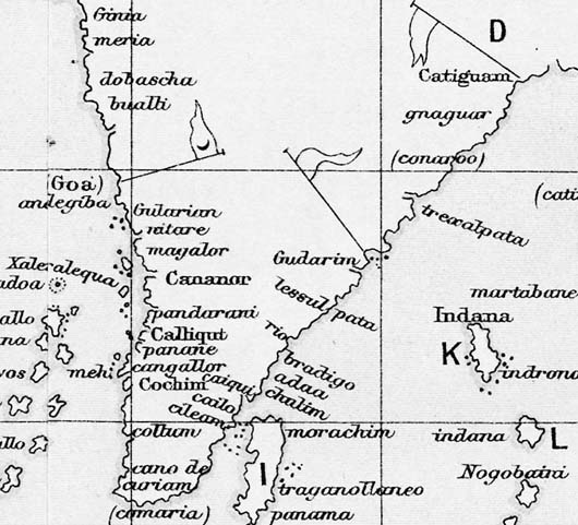 1502年的印度地图,图中包括斯里兰卡和一系列半神话的岛屿
