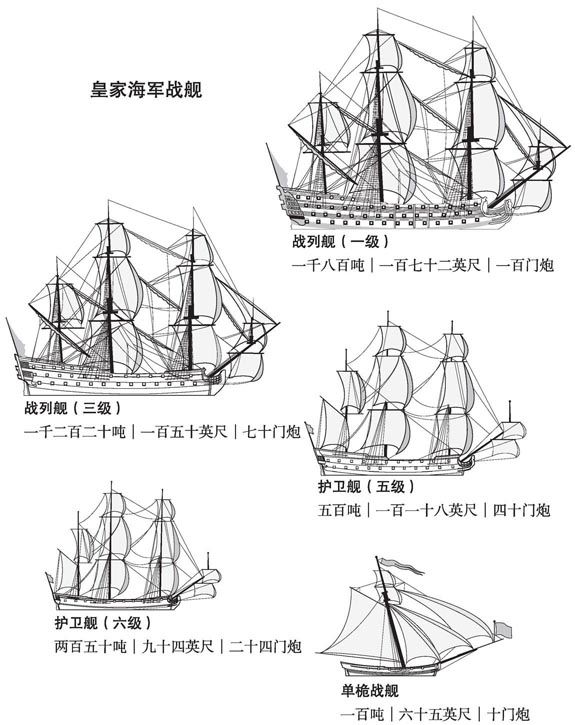 战争开始的头几年,英格兰与法国海军有两次大型的舰队交战,只有皇家海军最大型的船只战列舰(ship of the line)参战,那些船都是有三层重加农炮的大型笨重木头碉堡。[1]这些一级、二级与三级船(first-,second-,third-rates)速度过于缓慢笨重,无法用在像是护送商船、攻击敌方运输线,或是巡逻加勒比海不明暗礁与浅滩等较具机动性的任务上。这类船只的建造目的很明确:在大型交战中加入战线。