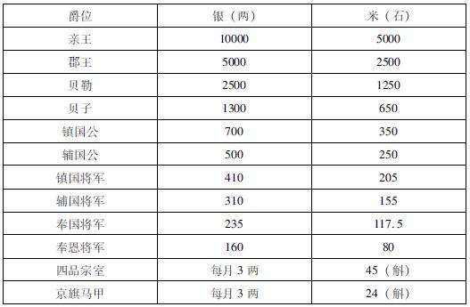 按一般谈宗室王公俸禄,不会谈及四品宗室,表中的最后两行是我加的,旨在与有爵位的宗室王公做一对比。据《清高宗实录》卷1164,乾隆四十七年定:“闲散宗室均赐给四品顶戴,四品武职补服。”闲散宗室凡年满20岁,经报准后,每月会给养赡银和养赡米。至于表中最后一行列入京旗马甲待遇,为的是与四品宗室的待遇做一对比。