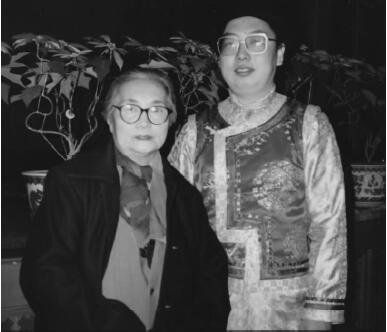 1995年毓臻在满族命名360年纪念会上与佟鸿举合影
