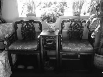 我哥哥不太善于理家。你想过去我家70多间房,缩成3间房,搬到这儿,外屋那两明一暗哪,两明的一间全摆的硬木家具,硬木桌,硬木的写字台,还有一对硬木的太师椅,条案,条案上面有小案。这些东西都散架了,就搁床底下,后来他没了,我帮着收拾去,我嫂子他们都不要,一堆棍儿要它干吗,我拉回来又存了两年,后来我说咱们得花钱把它们整起来,趁我活着不管怎样把老家具摆一摆。我就拿来一个茶几,这两把太师椅,这是清朝的,一对。那屋还一对藤屉子的小椅子,一个茶几,那是明朝的,都是我大爷爷做官,从南方弄来的。有一个花梨的画案给我儿子拉走了。