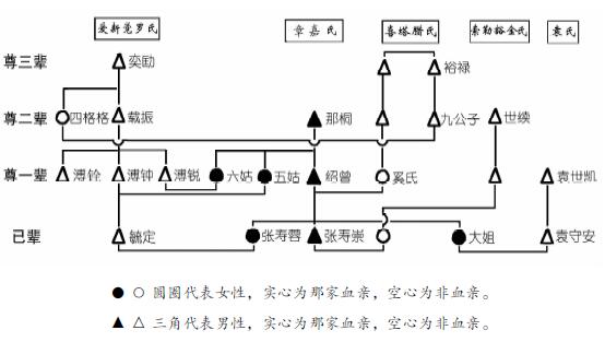▲ △ 三角代表男性,实心为那家血亲,空心为非血亲。