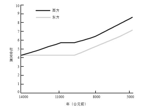 图4-1 至今的发展形势:公元前14000~前5000年,西方社会发展处于领先地位,第二章已对此做出阐述