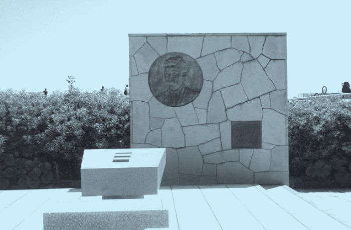 他于一九三五年七月十七日来此避暑游泳,淹没在突来波澜中而成为不归之客。