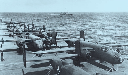 1个小时后,全部16架轰炸机起飞升空。所有轰炸机保持无线电静默,贴着海面低空飞行,扑向日本本土。