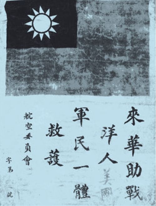 这是在中国战区作战的盟军飞行员飞行服后背上的身份标识,他们在敌后迫降后只要向中国百姓展示这个标识,就会得到救助和掩护