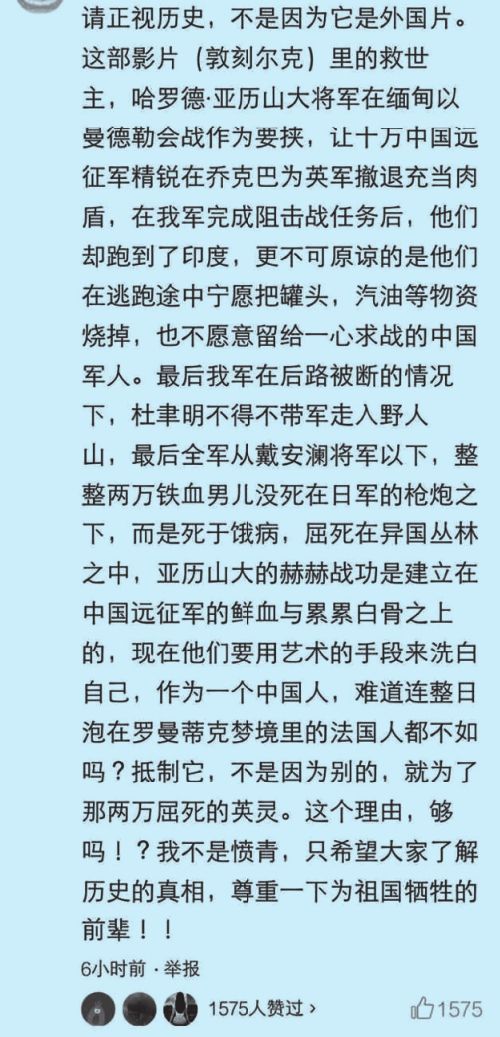 如果因为这件事,你愿意去了解一下中国远征军,我倒觉得是件好事。如果又不了解敦刻尔克,又不了解中国远征军,就跟着喊“抵制”,那就不值得了。