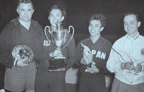但真正让容国团名声大振的,是1957年4月日本乒乓球队访问香港的一场比赛。在那场比赛中,容国团以21比19和21比13,总比分2比0战胜了日本选手荻村伊智朗。荻村伊智朗是谁?他是第23届世界乒乓球锦标赛的冠军(后来成为第一个担任国际乒联主席的亚洲人)。