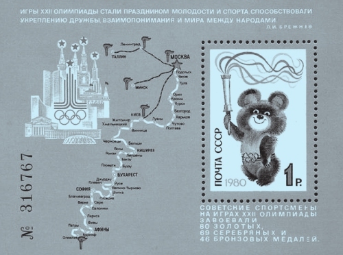 莫斯科奥运会的邮票,吉祥物米莎熊