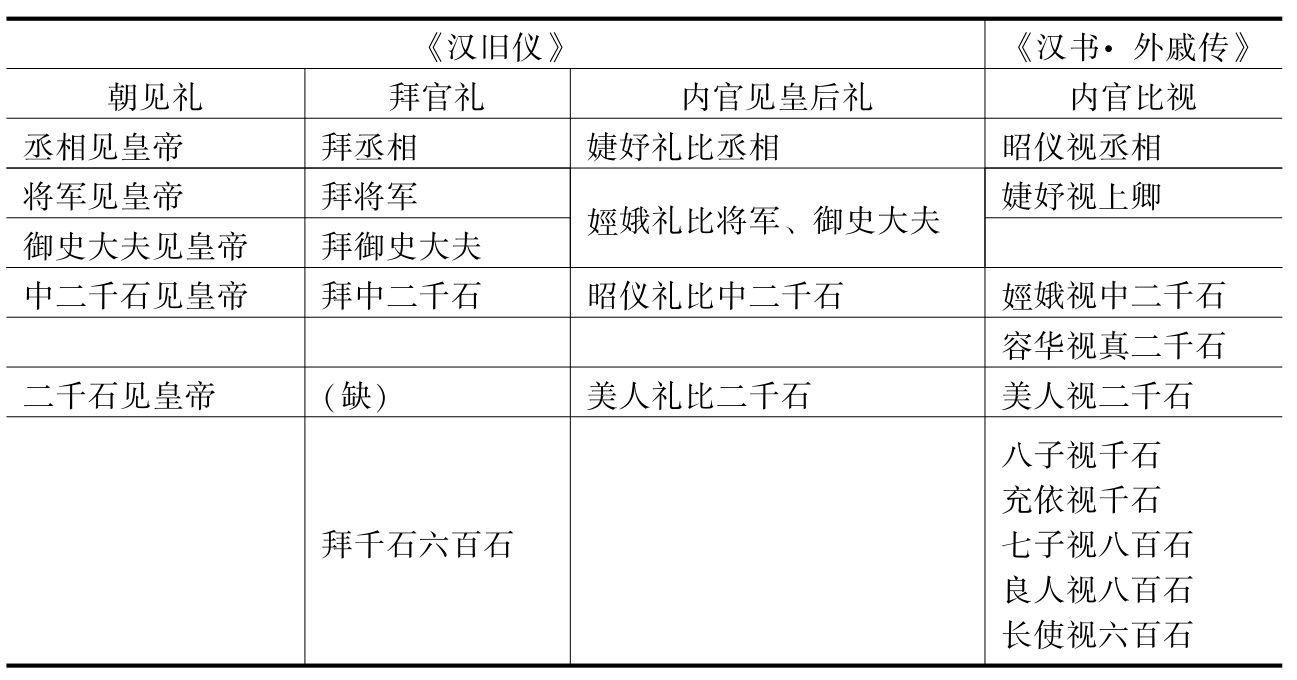4.元帝加昭仪之号,凡十四等云。昭仪位视丞相,爵比诸侯王。婕妤视上卿,比列侯。娙娥视中二千石,比关内侯。傛华视真二千石,比大上造。美人视二千石,比少上造……(《汉书》卷九七上《外戚传》)